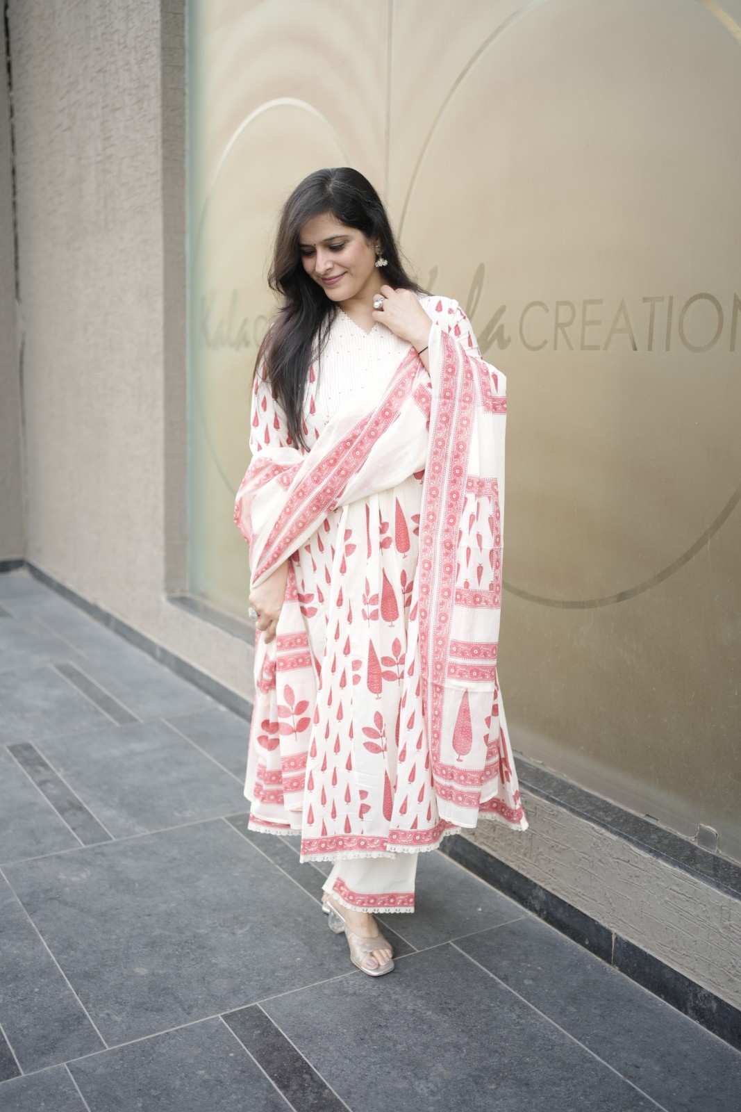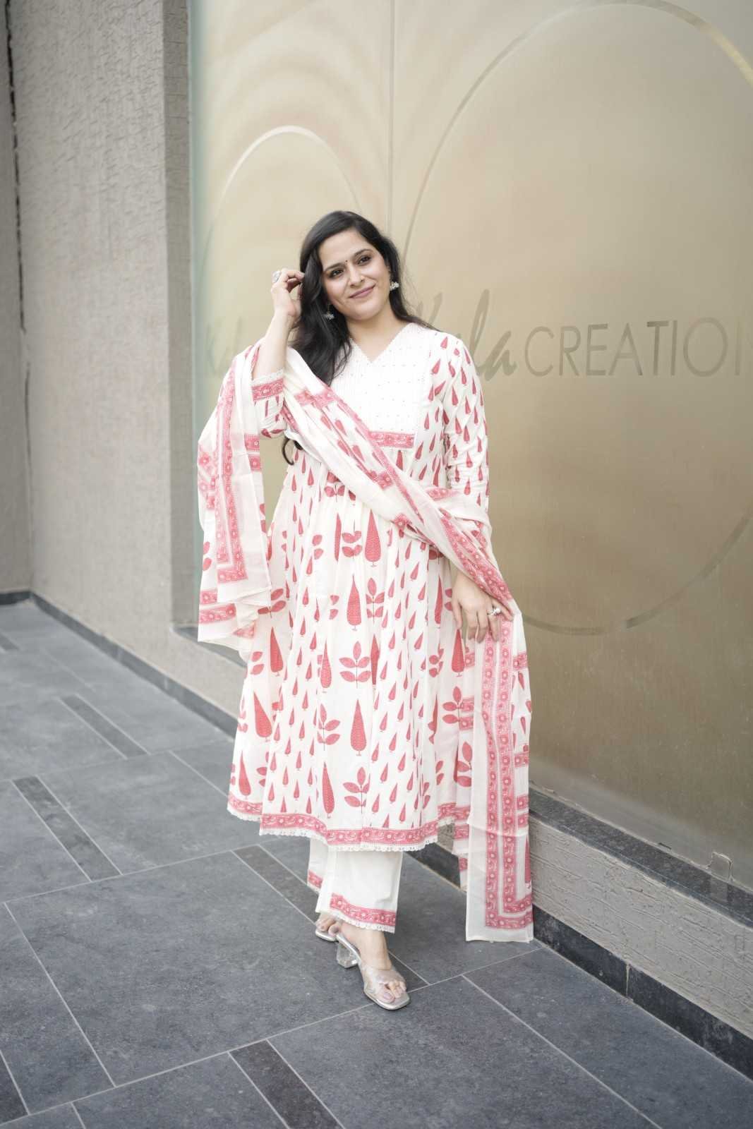 Kala Creation A-line Cotton Kurta Paired With Pants And A Matching Dupatta