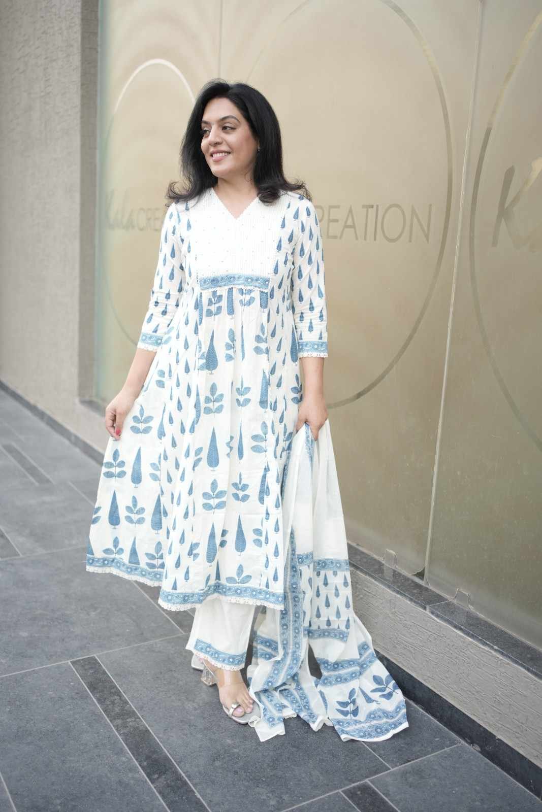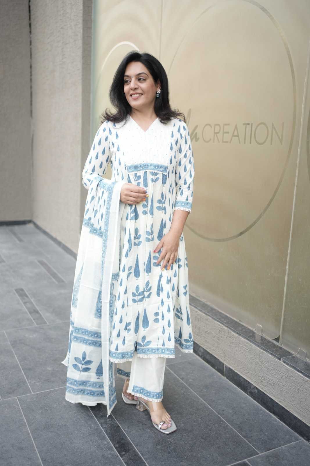 Kala Creation A-line Cotton Kurta Paired With Pants And A Matching Dupatta