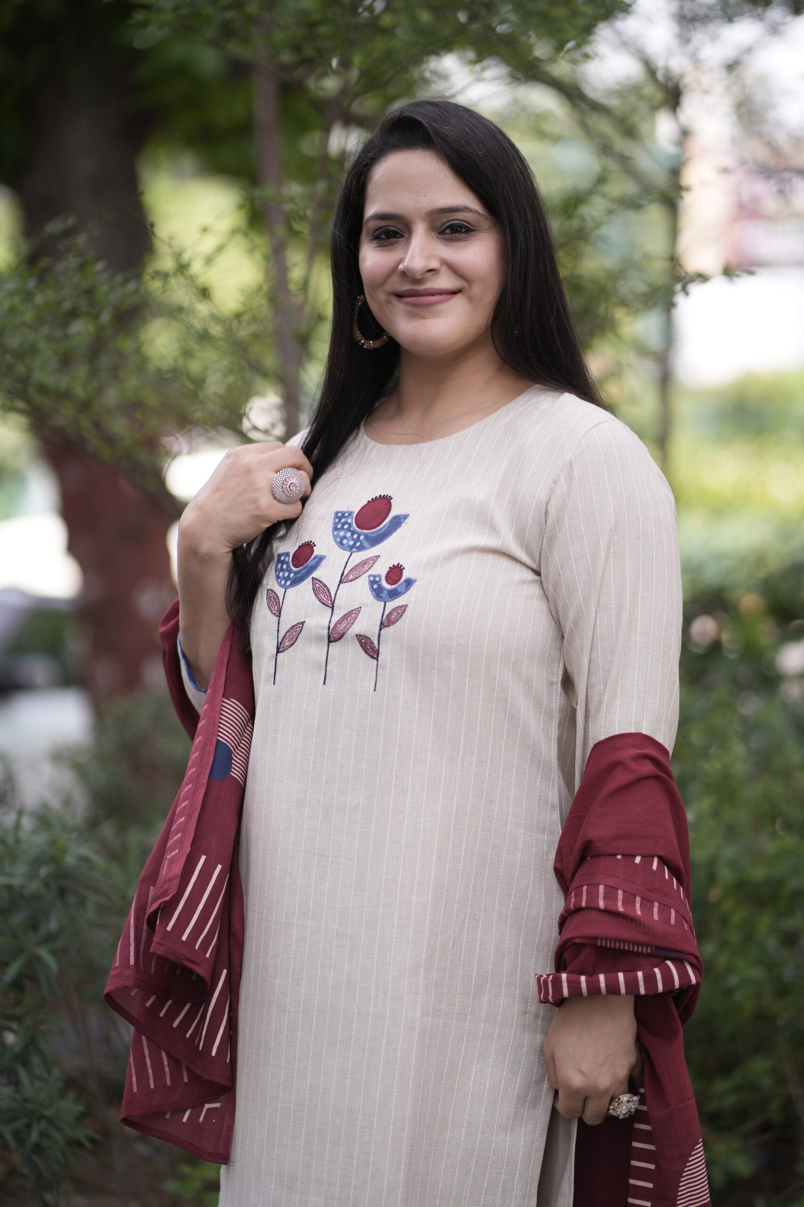 Kala Creation Beautiful Embroidered Work Palin Straight Cut Kurta Pant And Dupatta Set