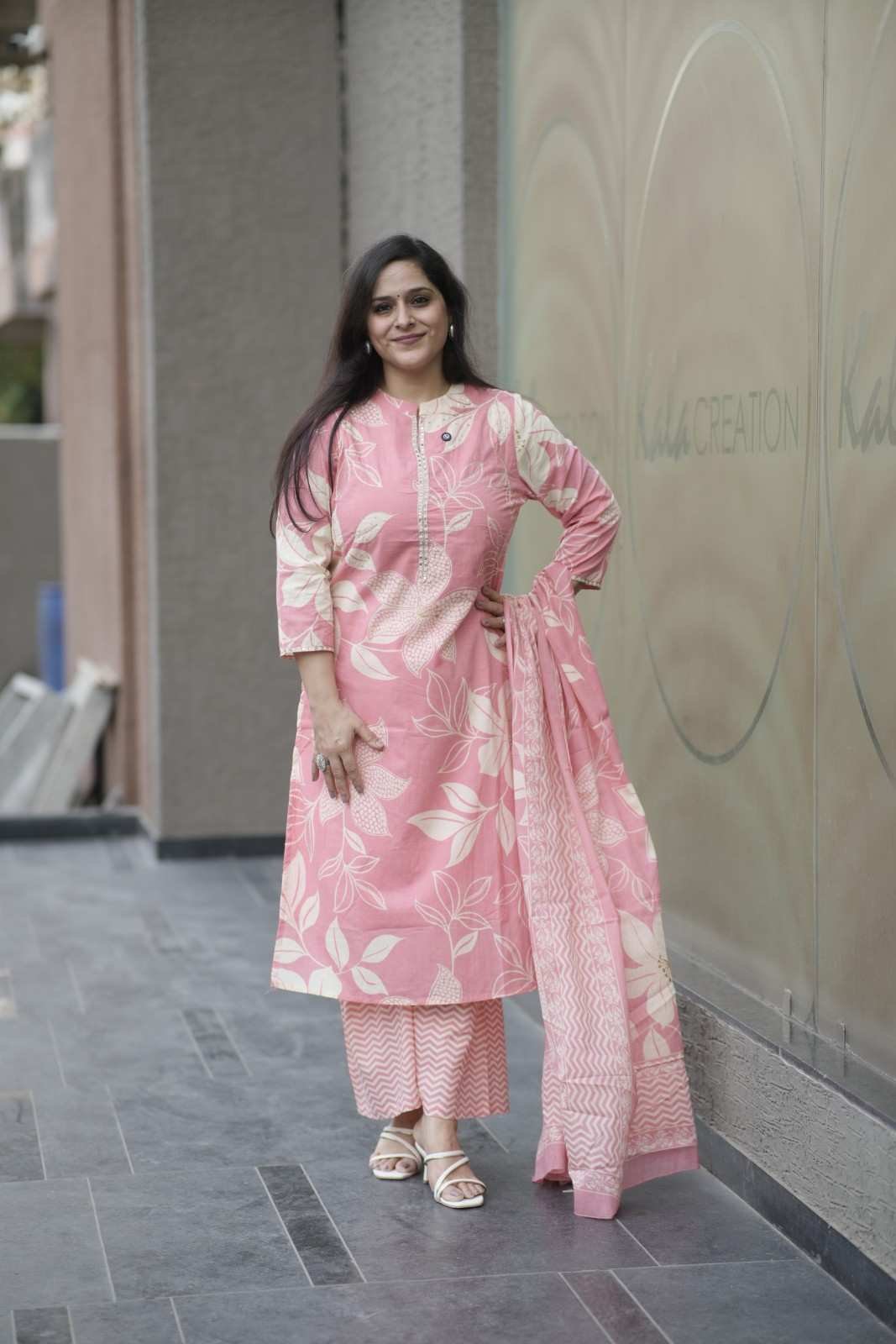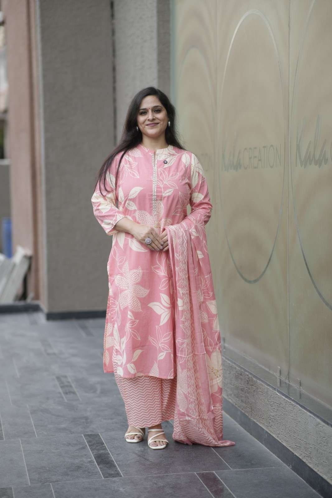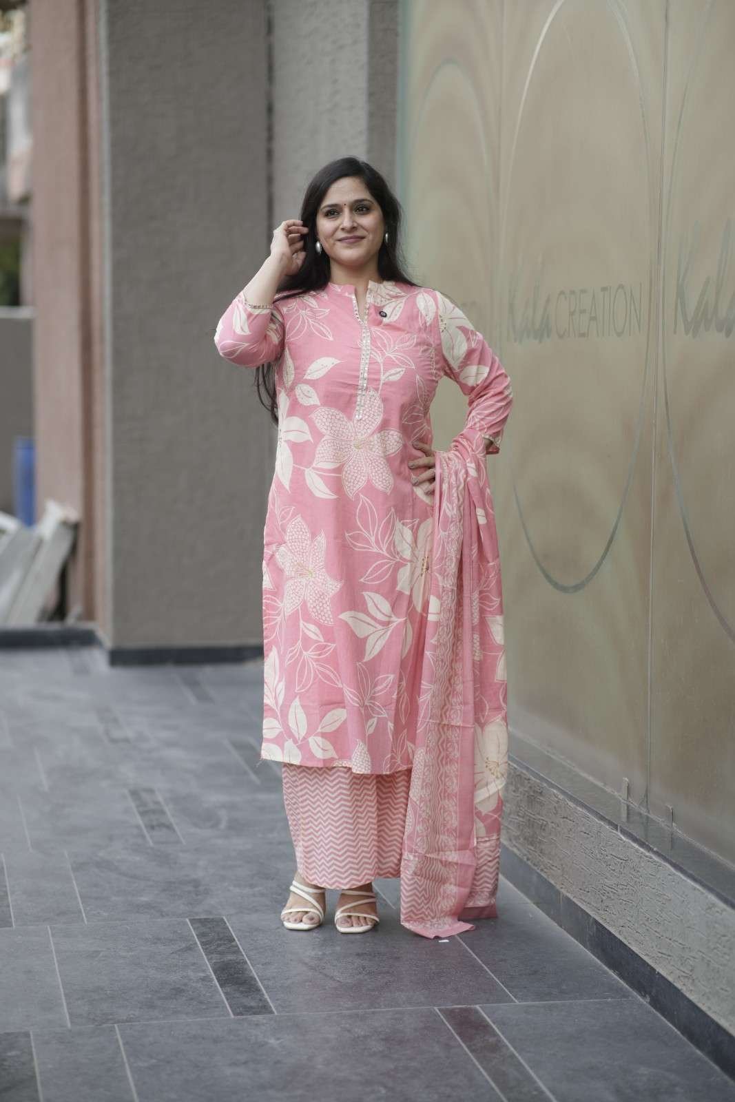 Kala Creation Beautiful Floral Printed Kurta Pant And Dupatta Set