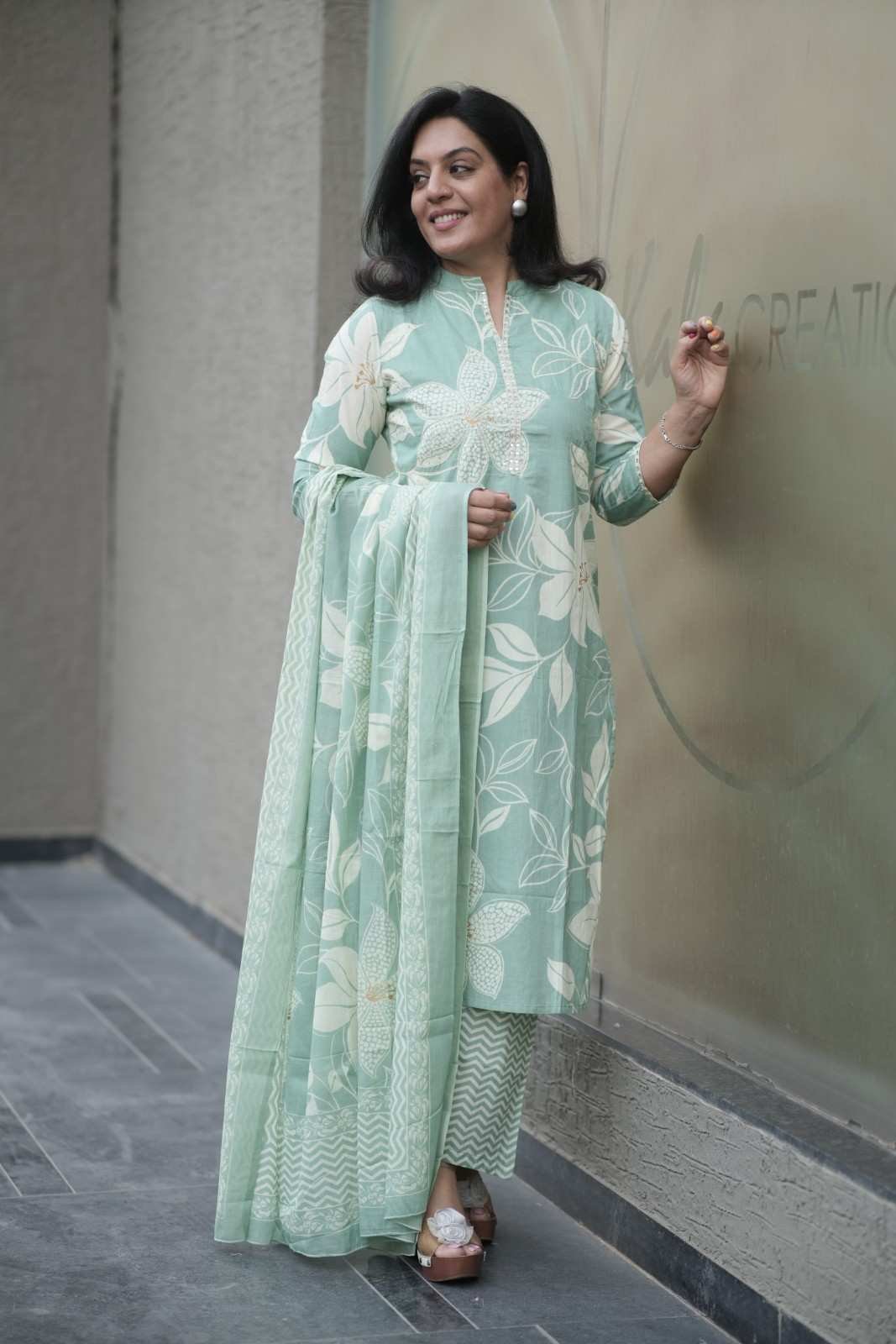 Kala Creation Beautiful Floral Printed Kurta Pant And Dupatta Set