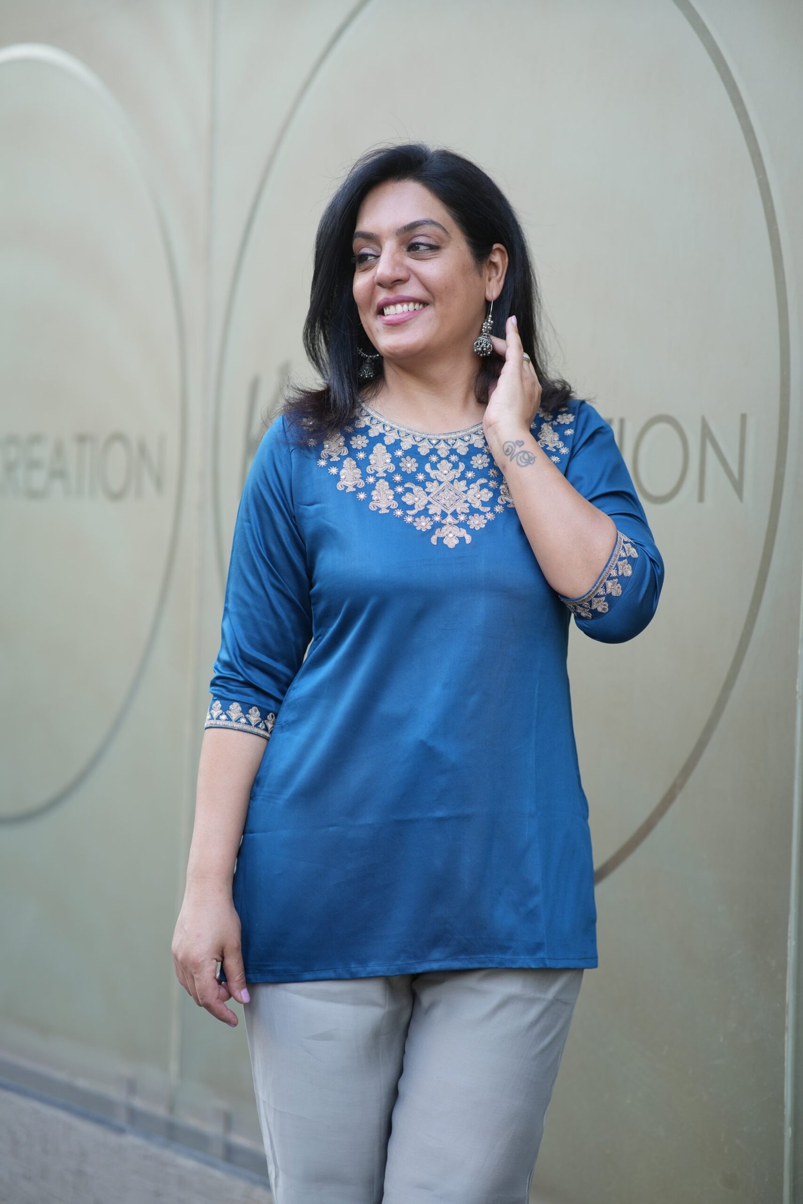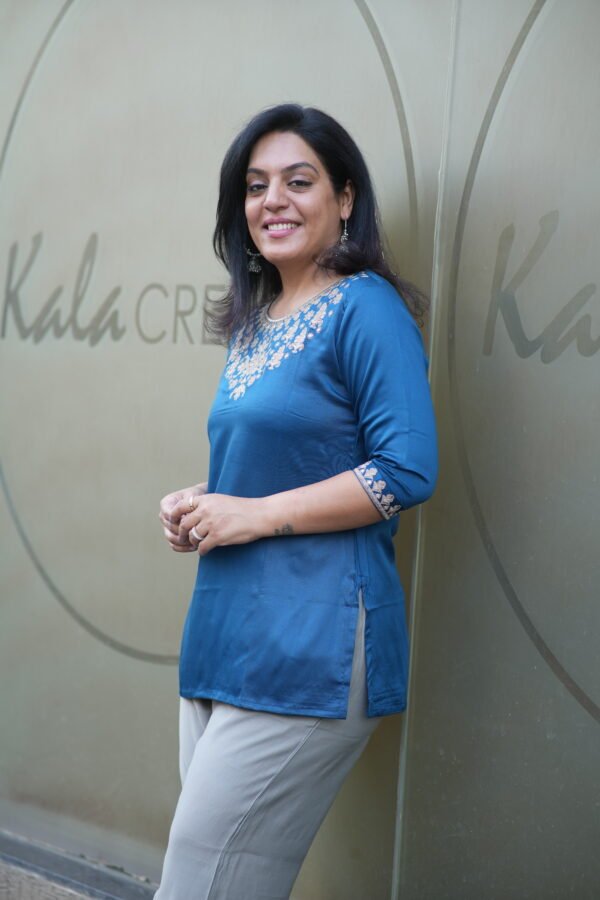 Kala Creation Beautiful Neckline Embroidered Work Plain Short Kurti