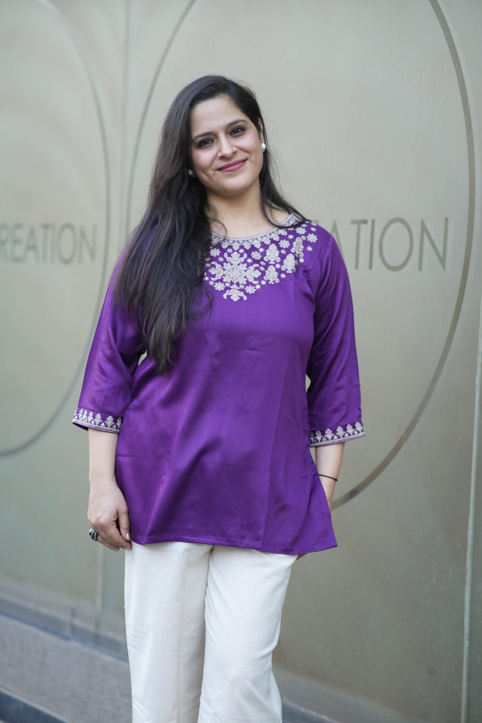 Kala Creation Beautiful Neckline Embroidered Work Plain Short Kurti