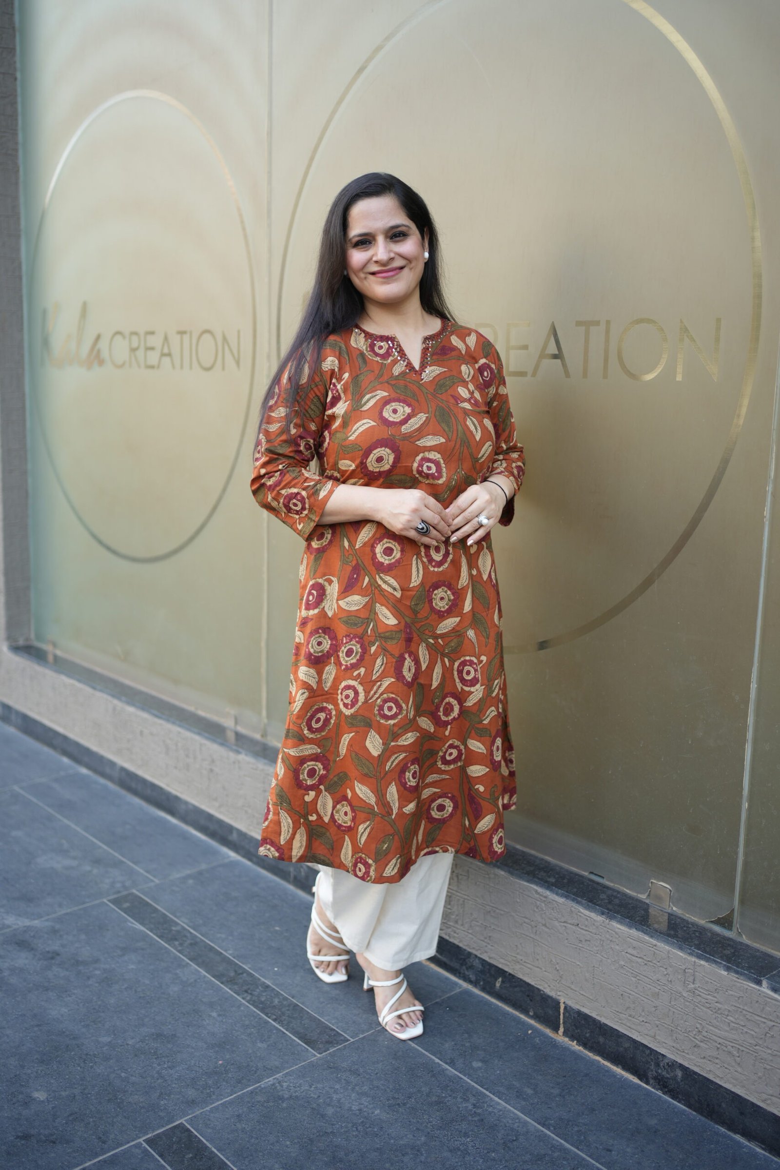 Kala Creation Beautiful Printed Cotton V-Neck Kurta