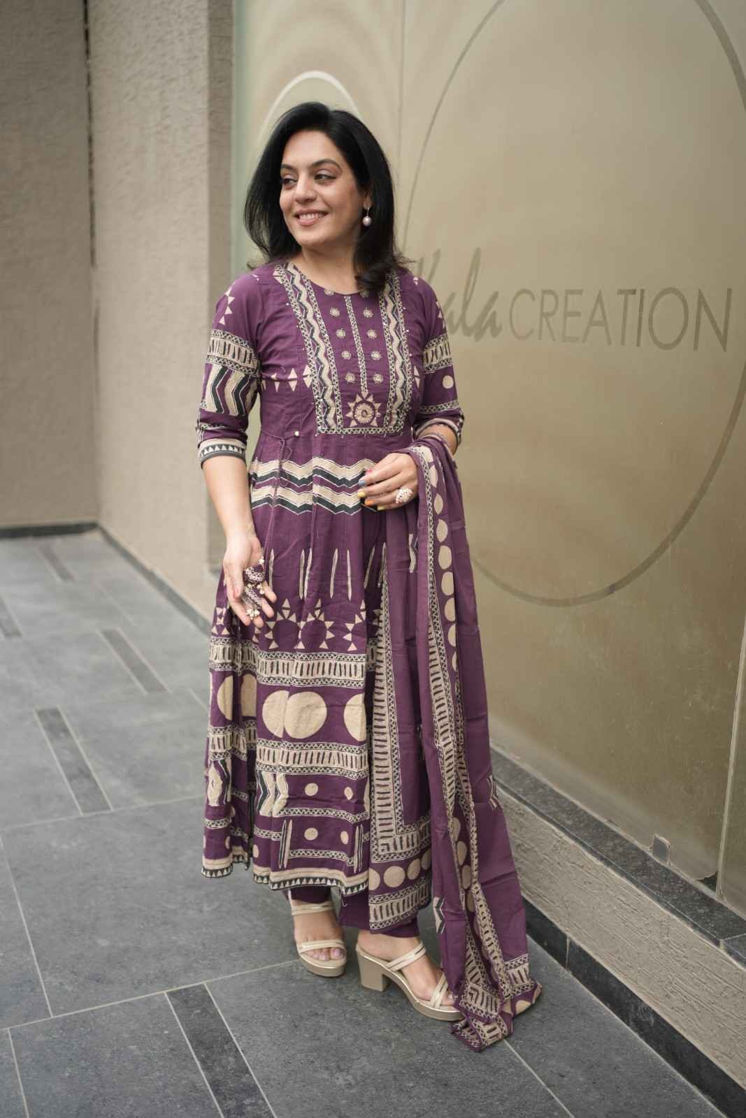 Kala Creation Beautiful Printed Flared Kurta Pant And Dupatta Set
