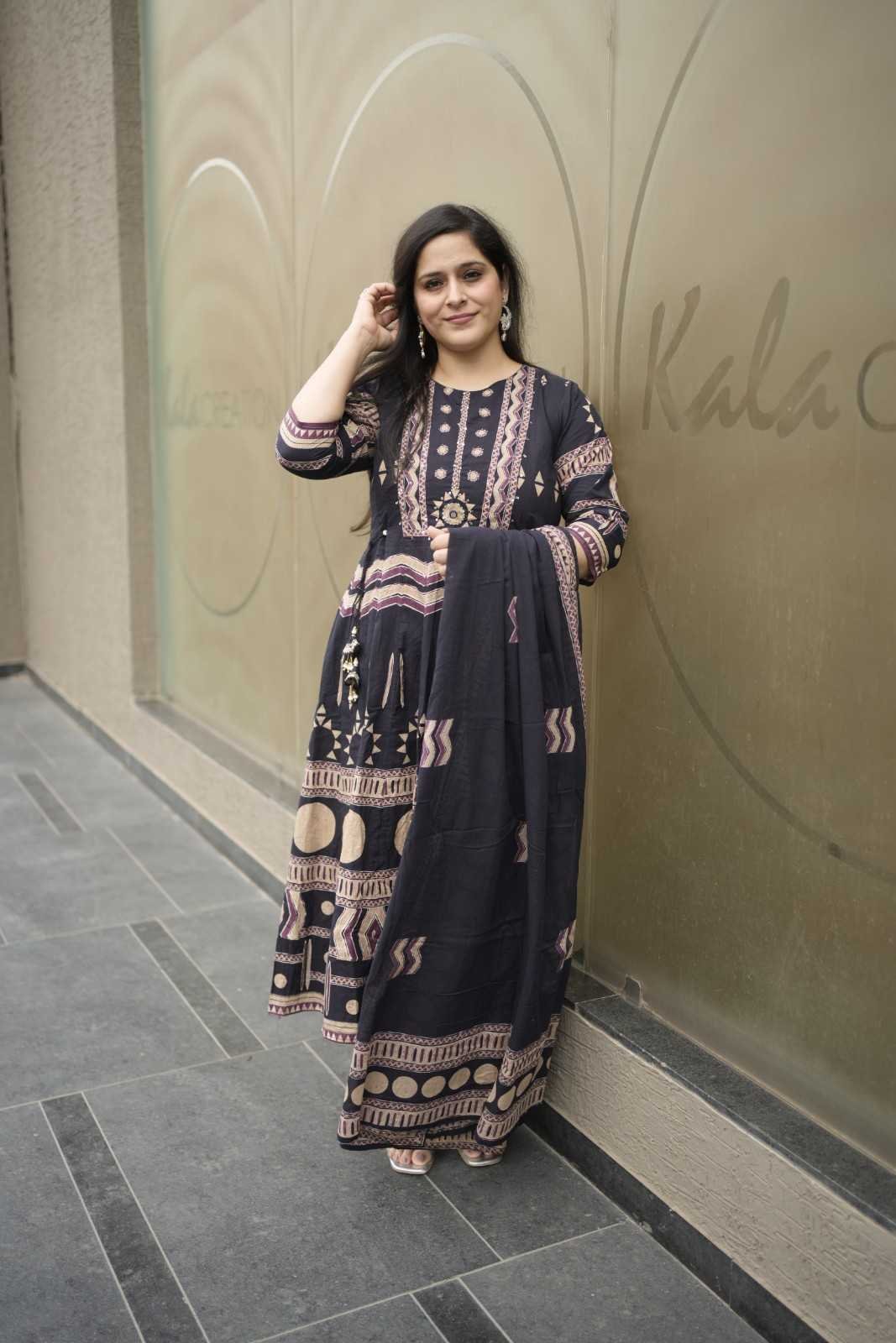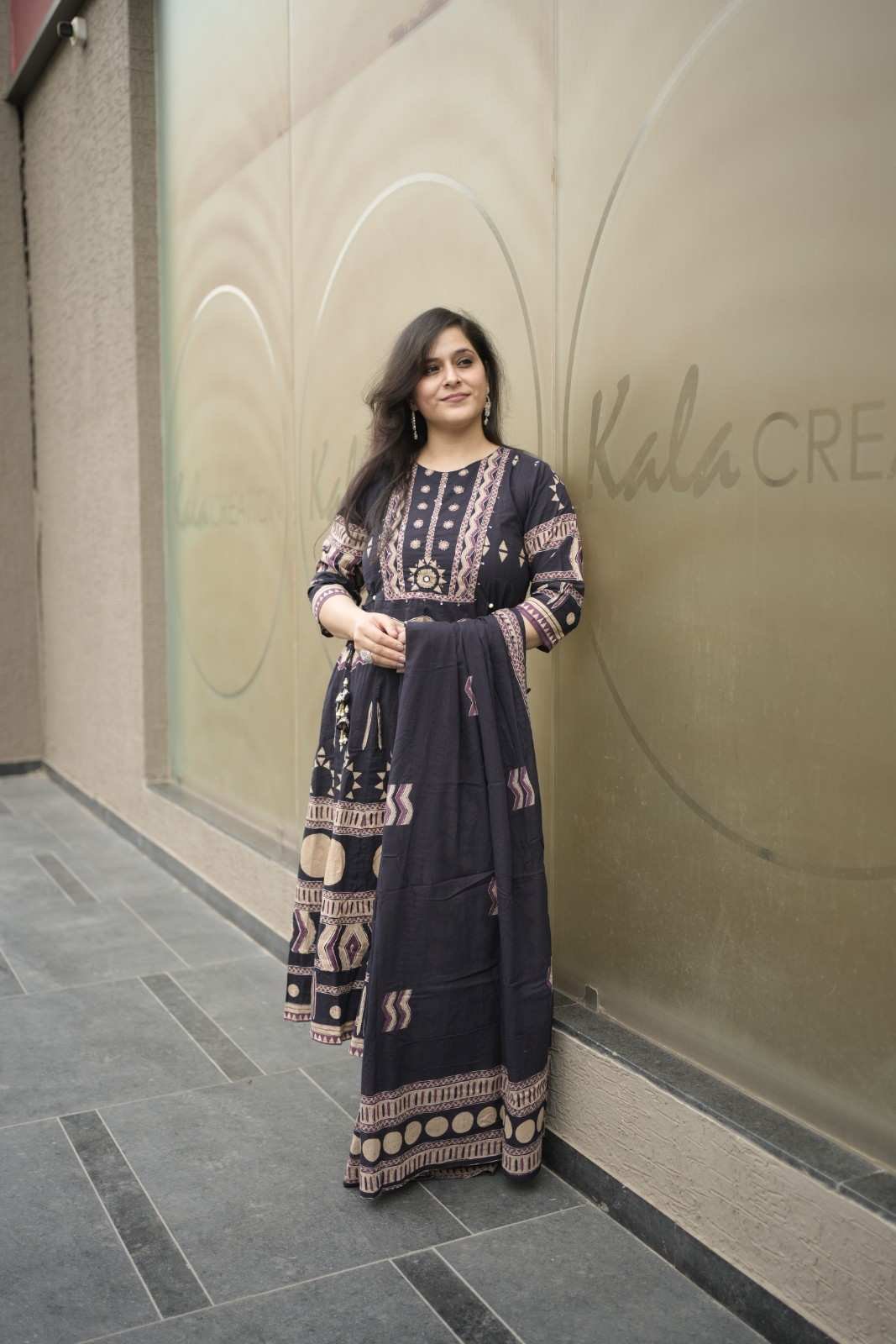 Kala Creation Beautiful Printed Flared Kurta Pant And Dupatta Set