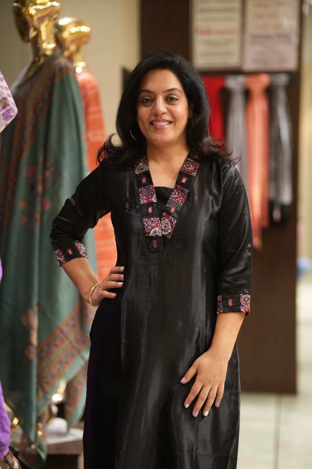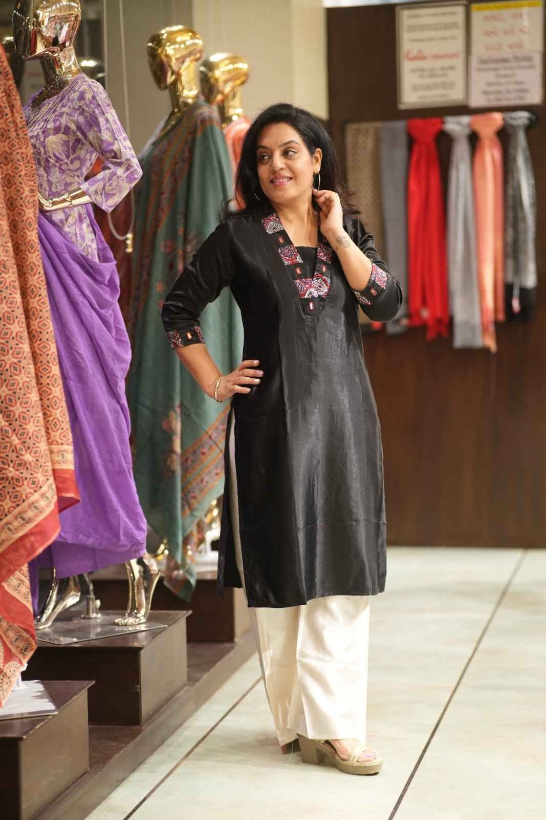 Kala Creation Beautiful V Neckline Mirror Work Plain Kurti Black