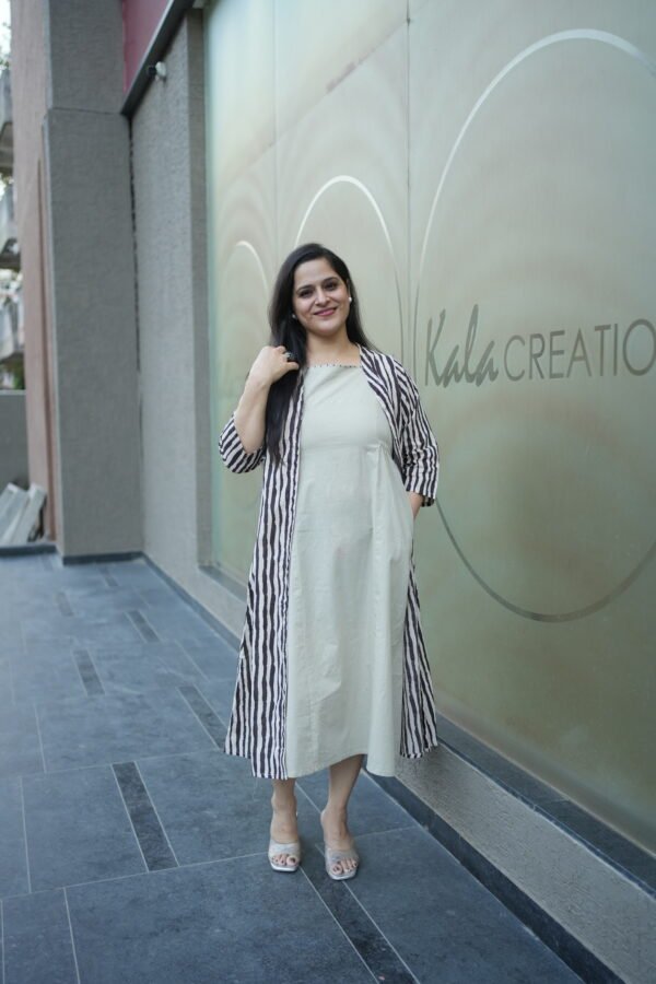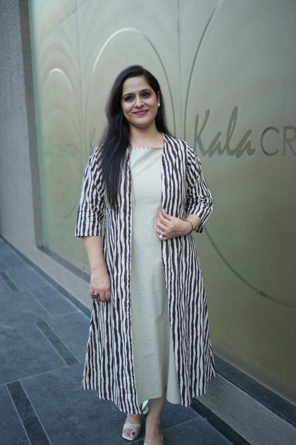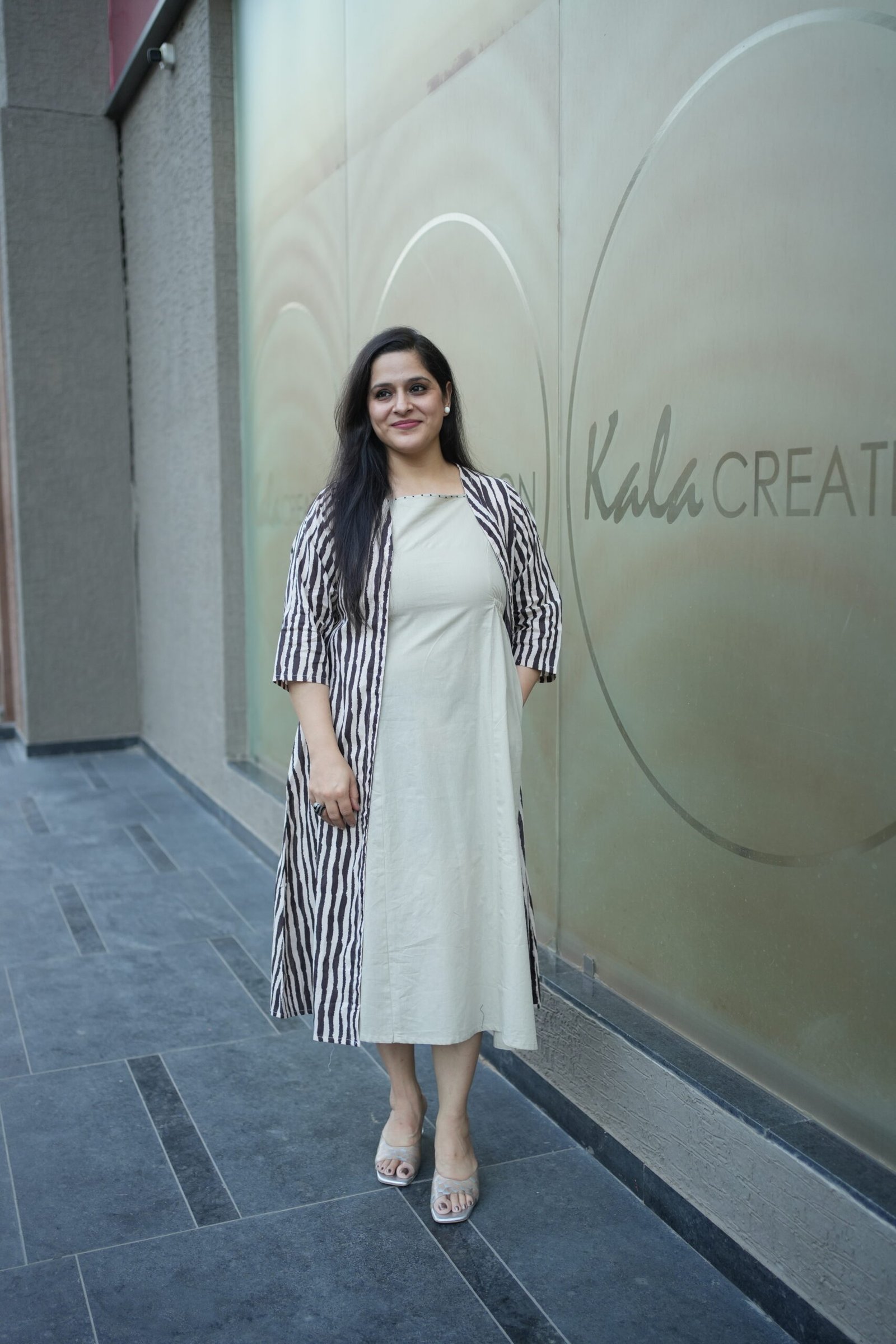 Kala Creation Beige Cotton Kurta With Striped Jacket