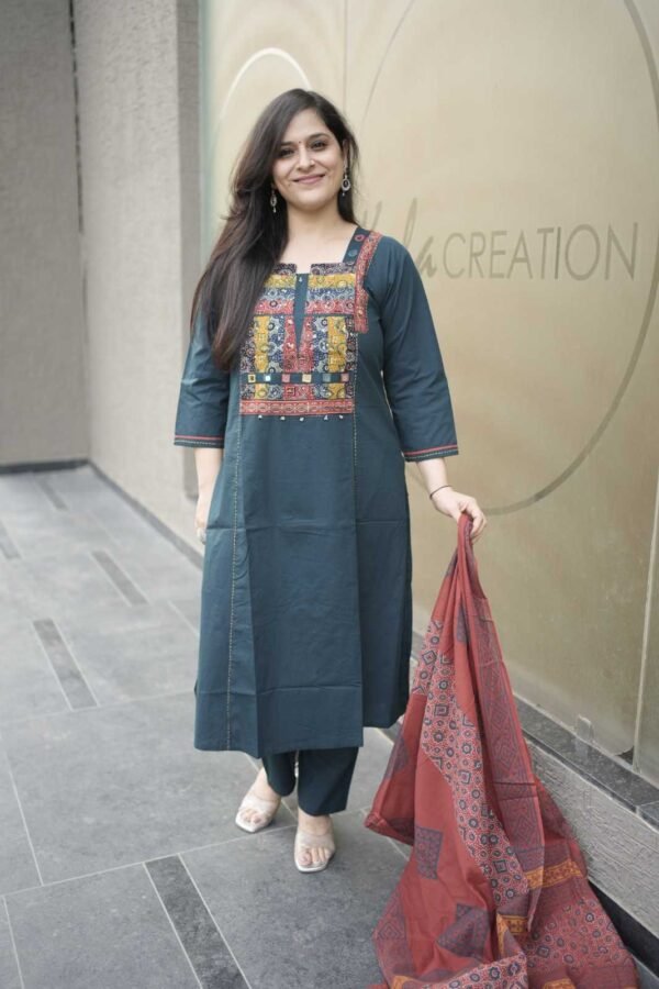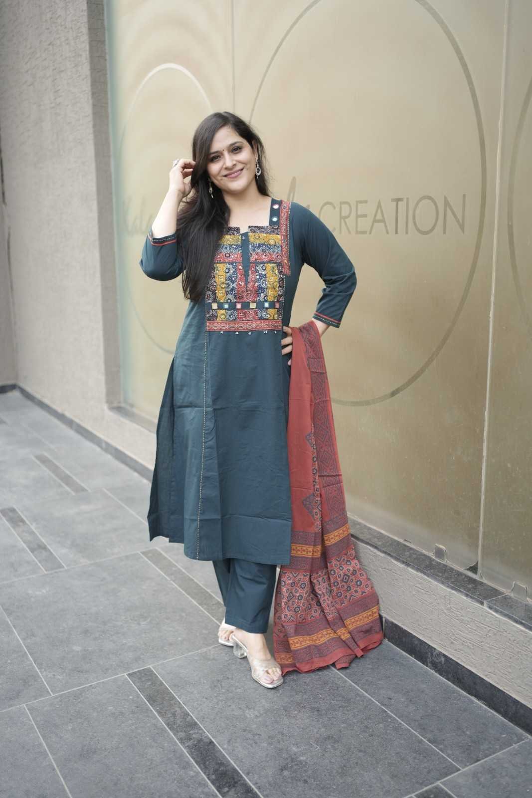 Kala Creation Cotton Mirror Kurta Pant And Dupatta Set