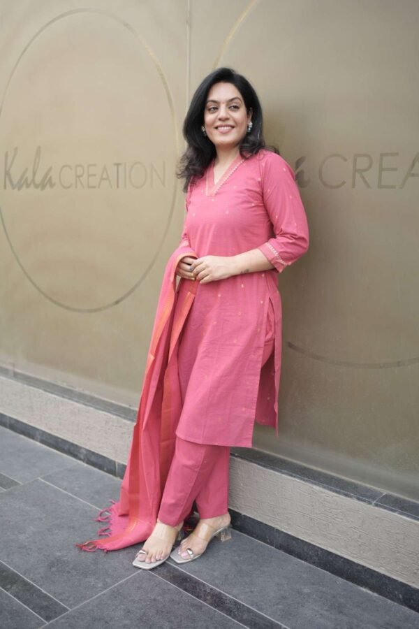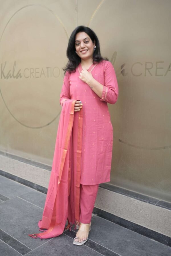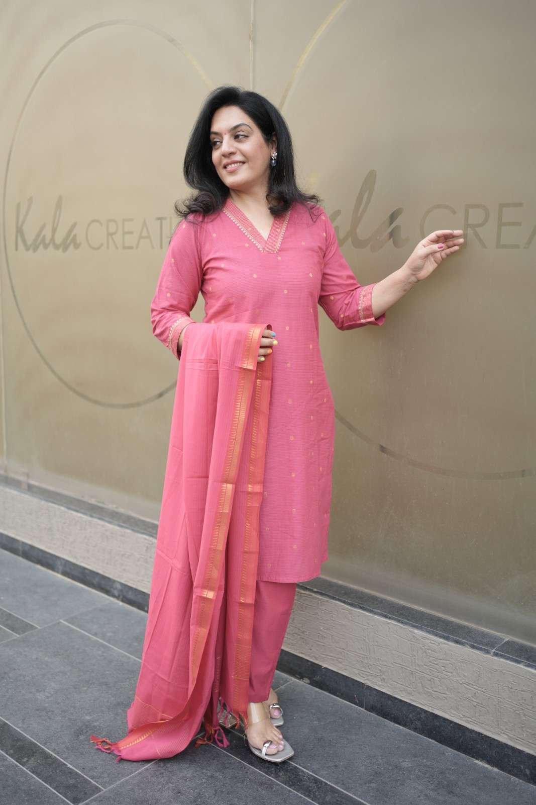 Kala Creation Elegant Straight Cut Kurta V-Neckline Matching Straight Pant And Dupatta Set