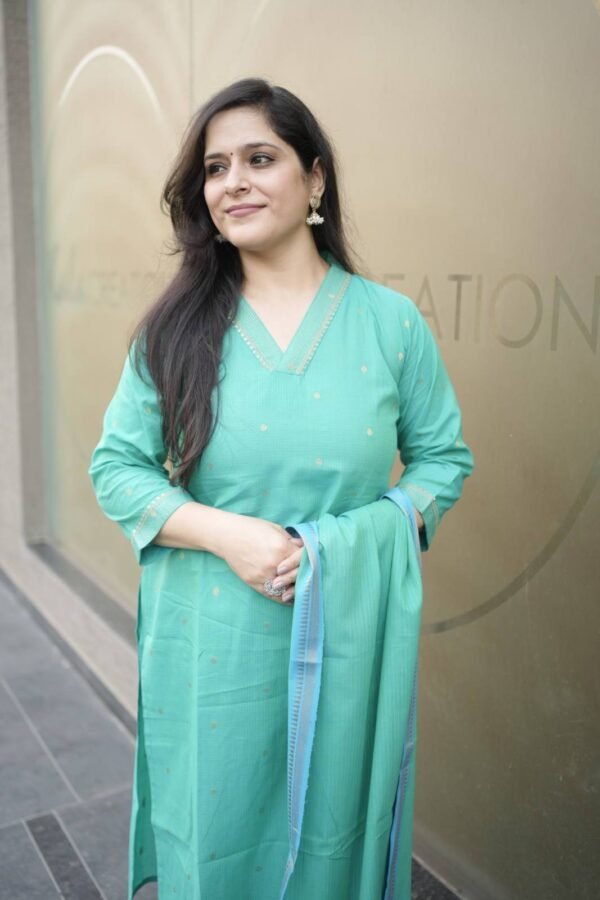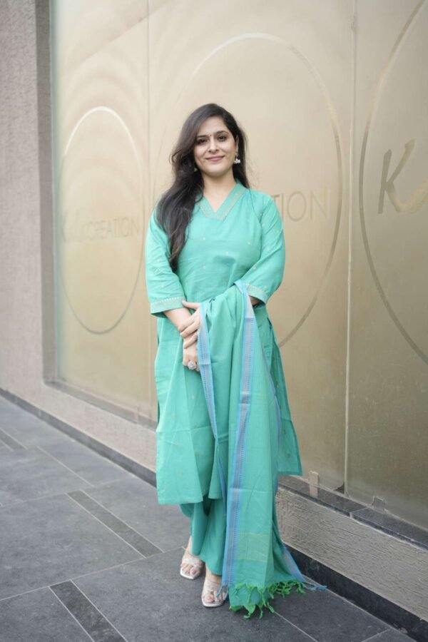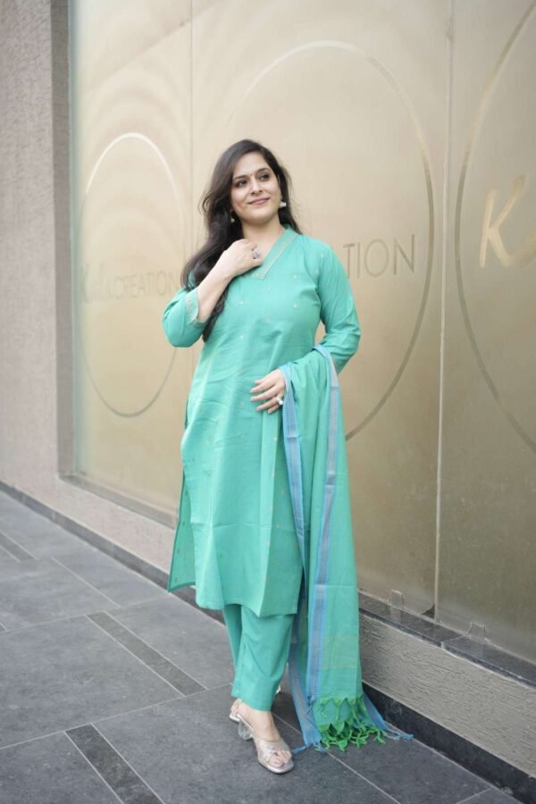 Kala Creation Elegant Straight Cut Kurta V-Neckline Matching Straight Pant And Dupatta Set