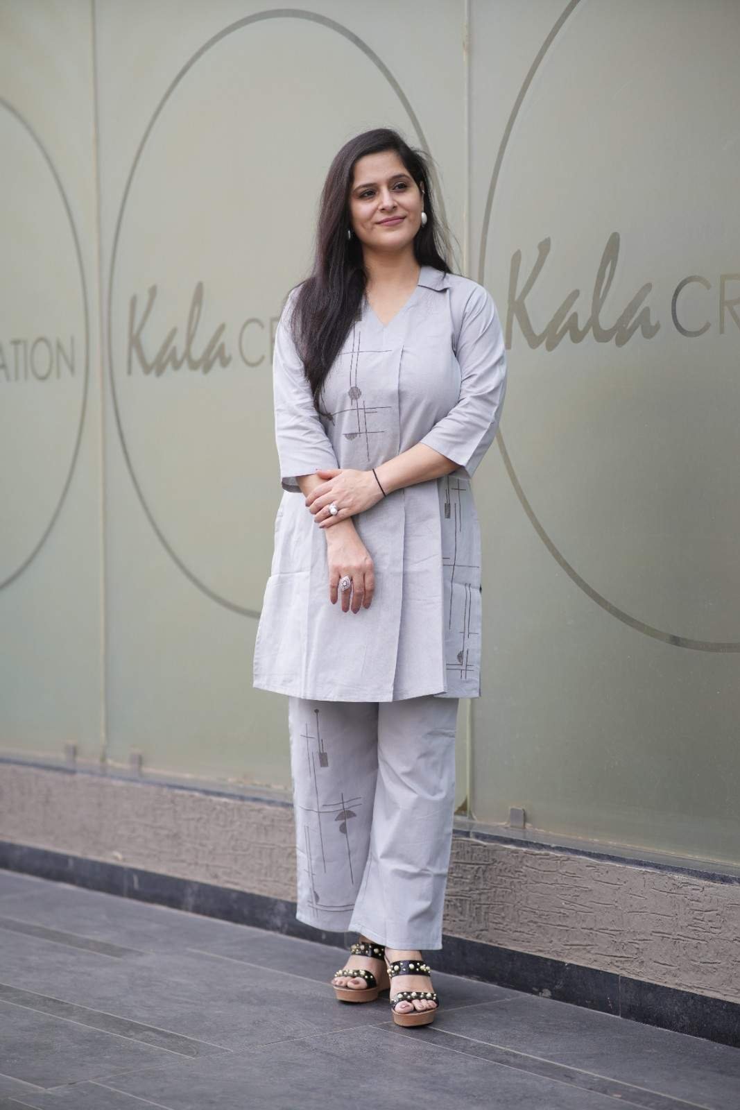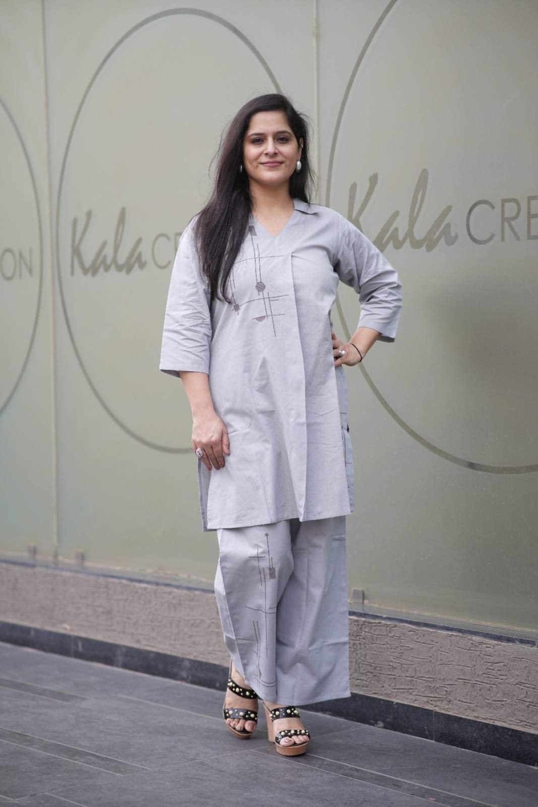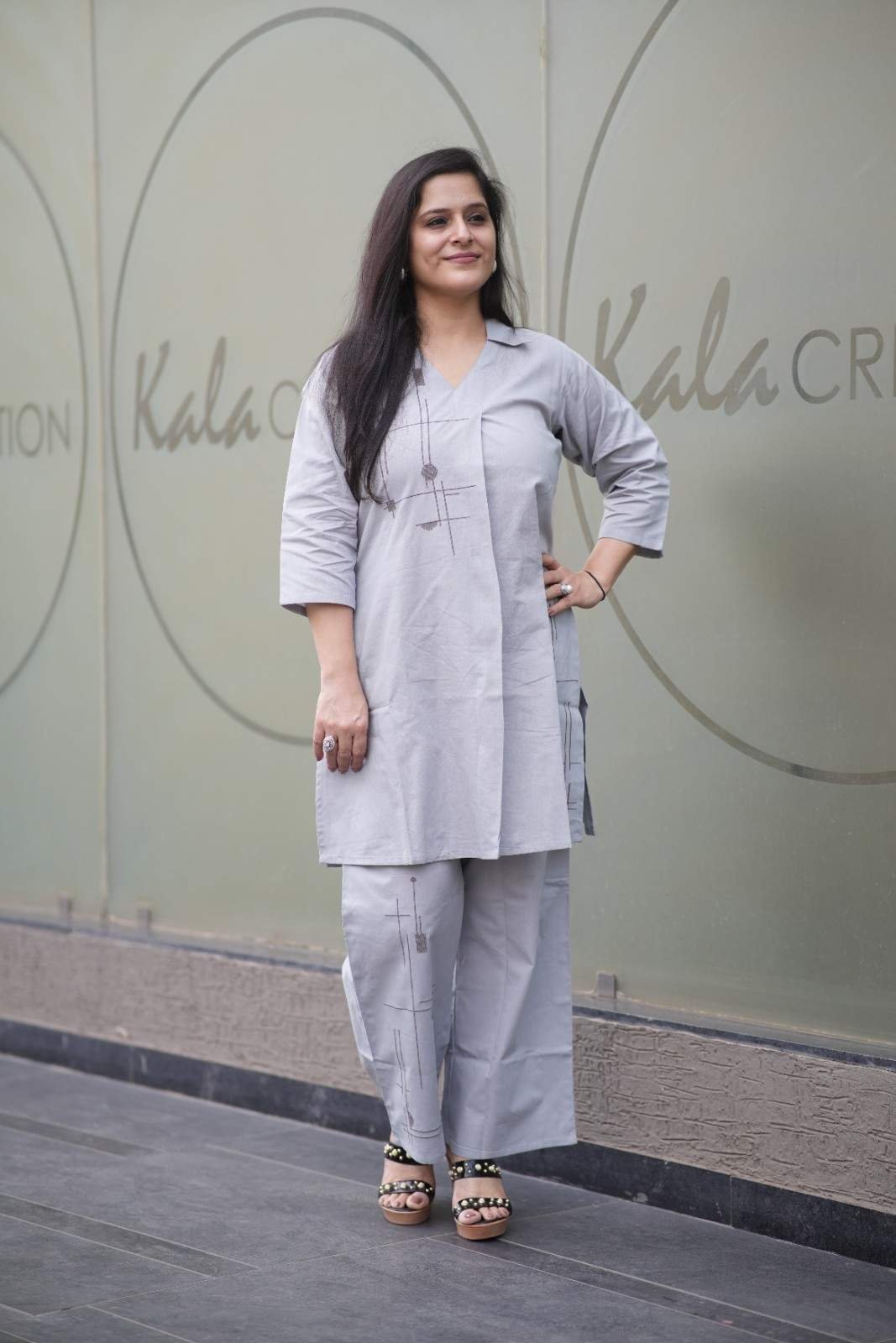 Kala Creation Office Wear Grey Kurti With Pant Co-Ord Set