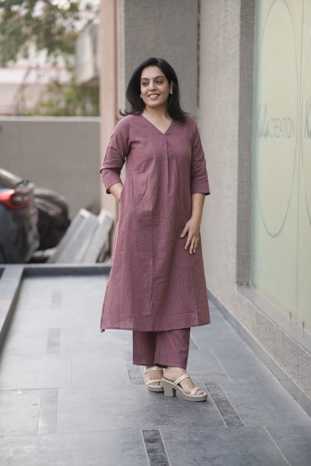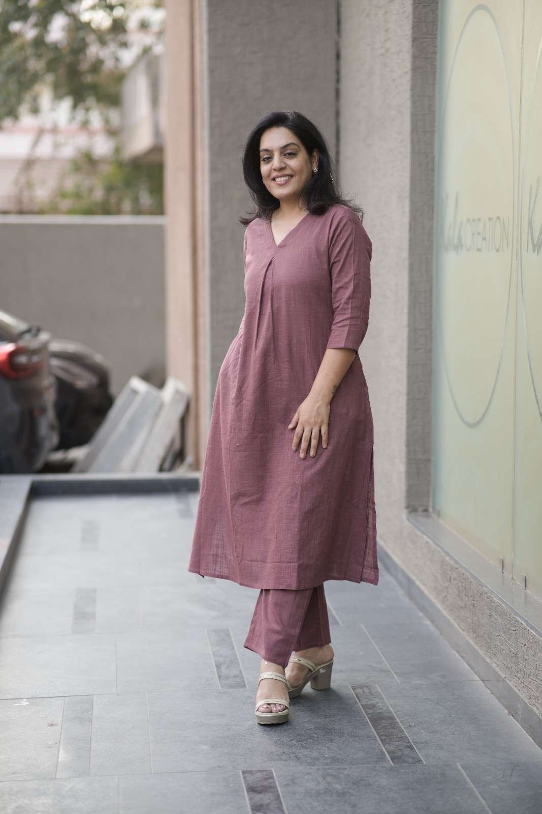 Kala Creation Plain V-Neck Kurta Pant Set