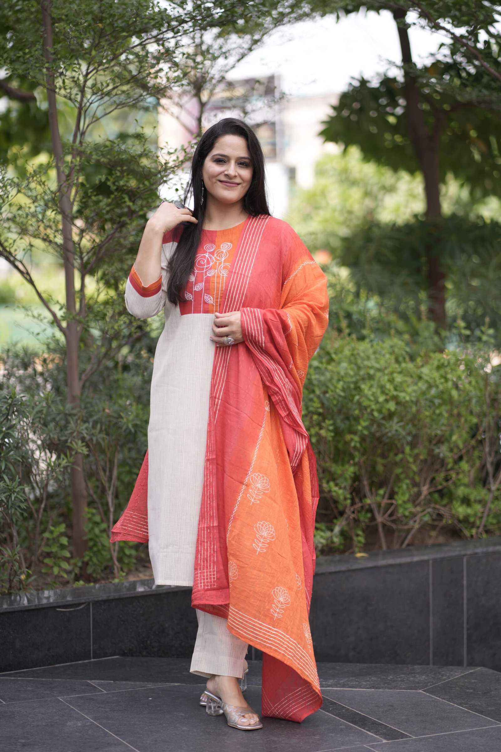 Kala Creation Plain Kurta Pant And Dupatta Set