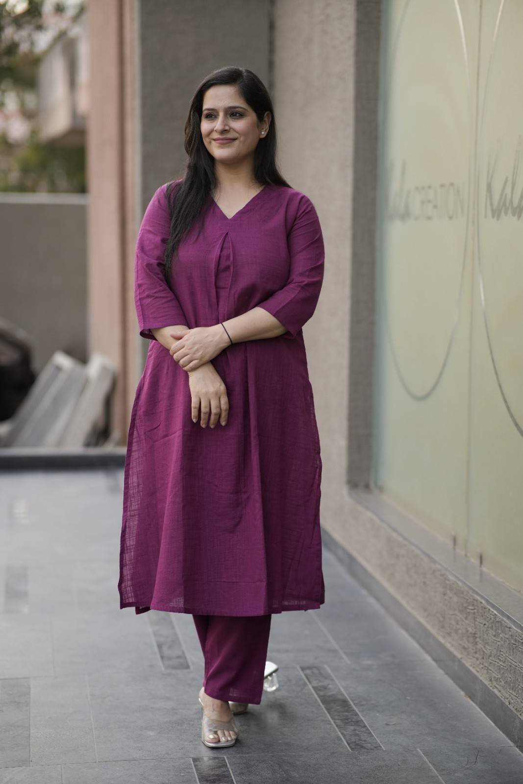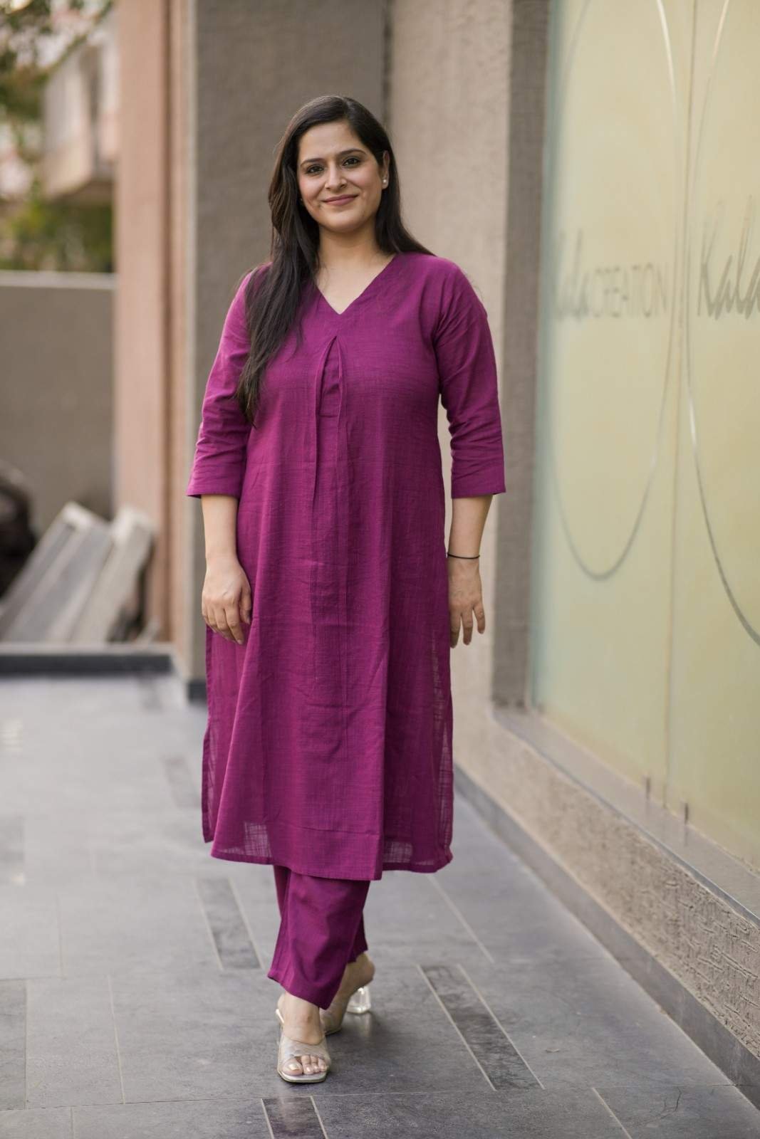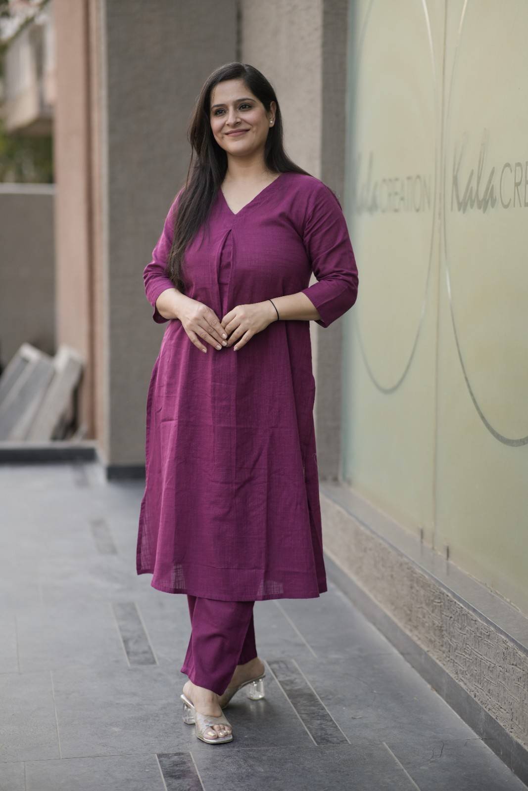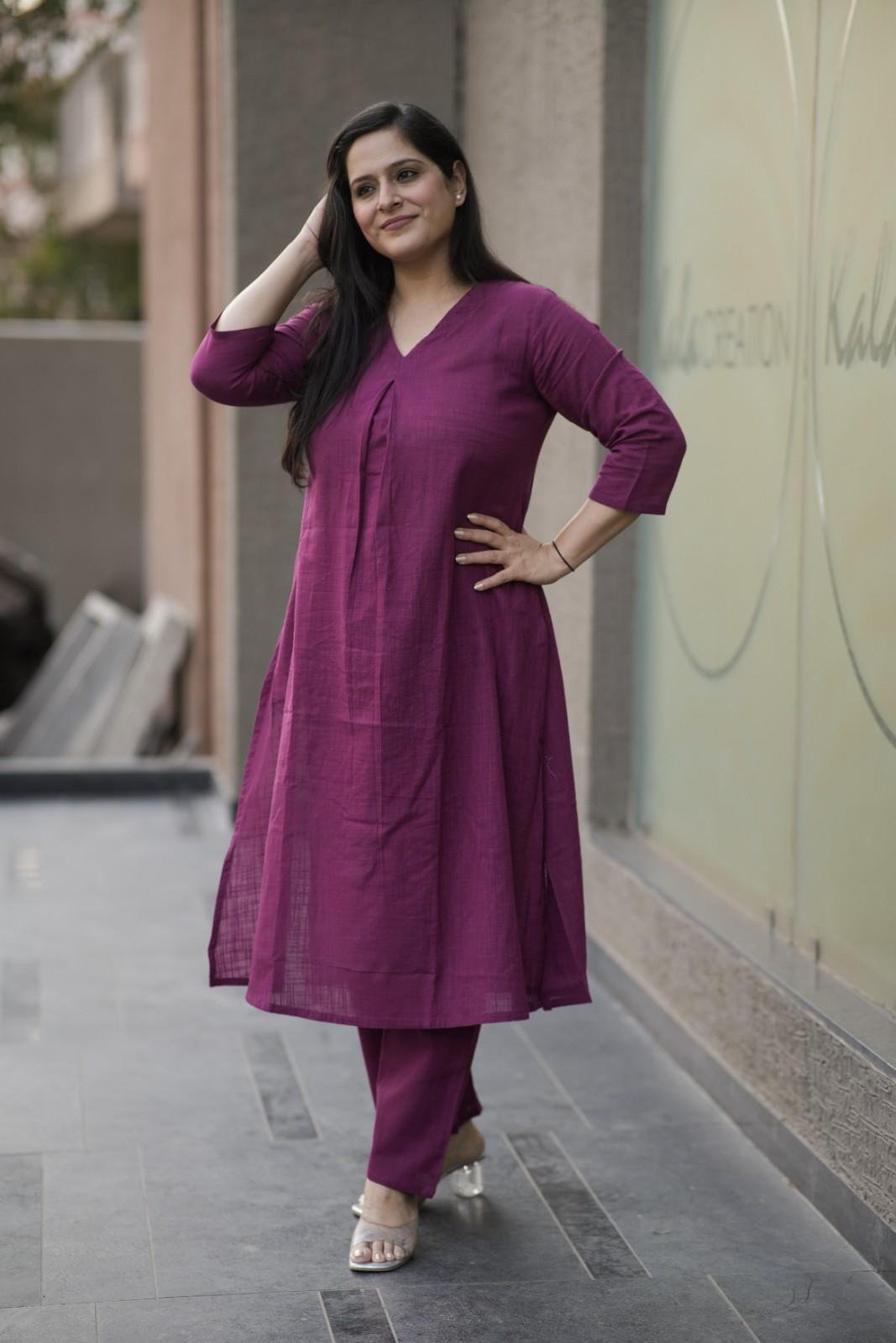 Kala Creation Plain V-Neck Kurta Pant Set