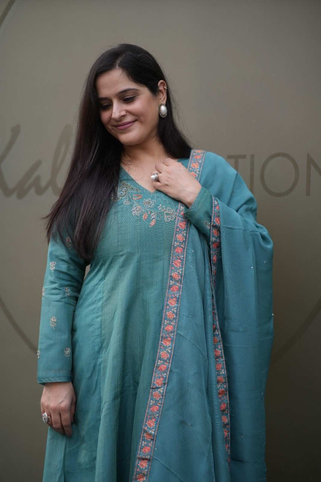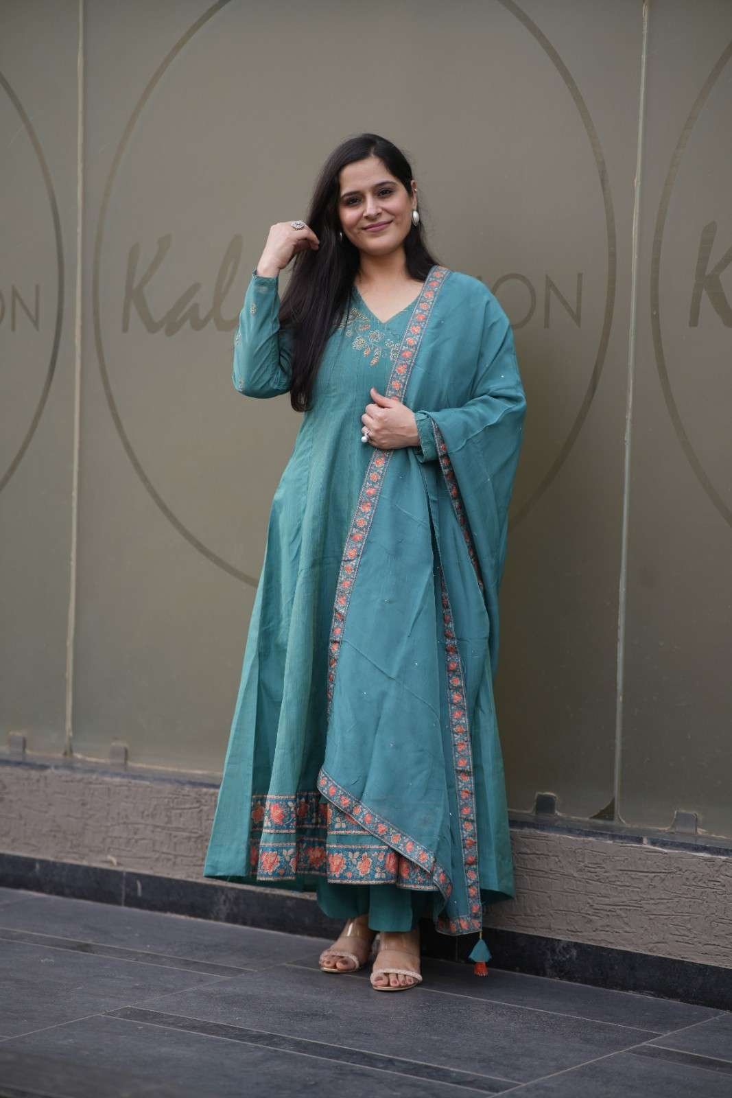 Kala Creation Rama Angrakha Style Flared Kurta Pant And Dupatta Set