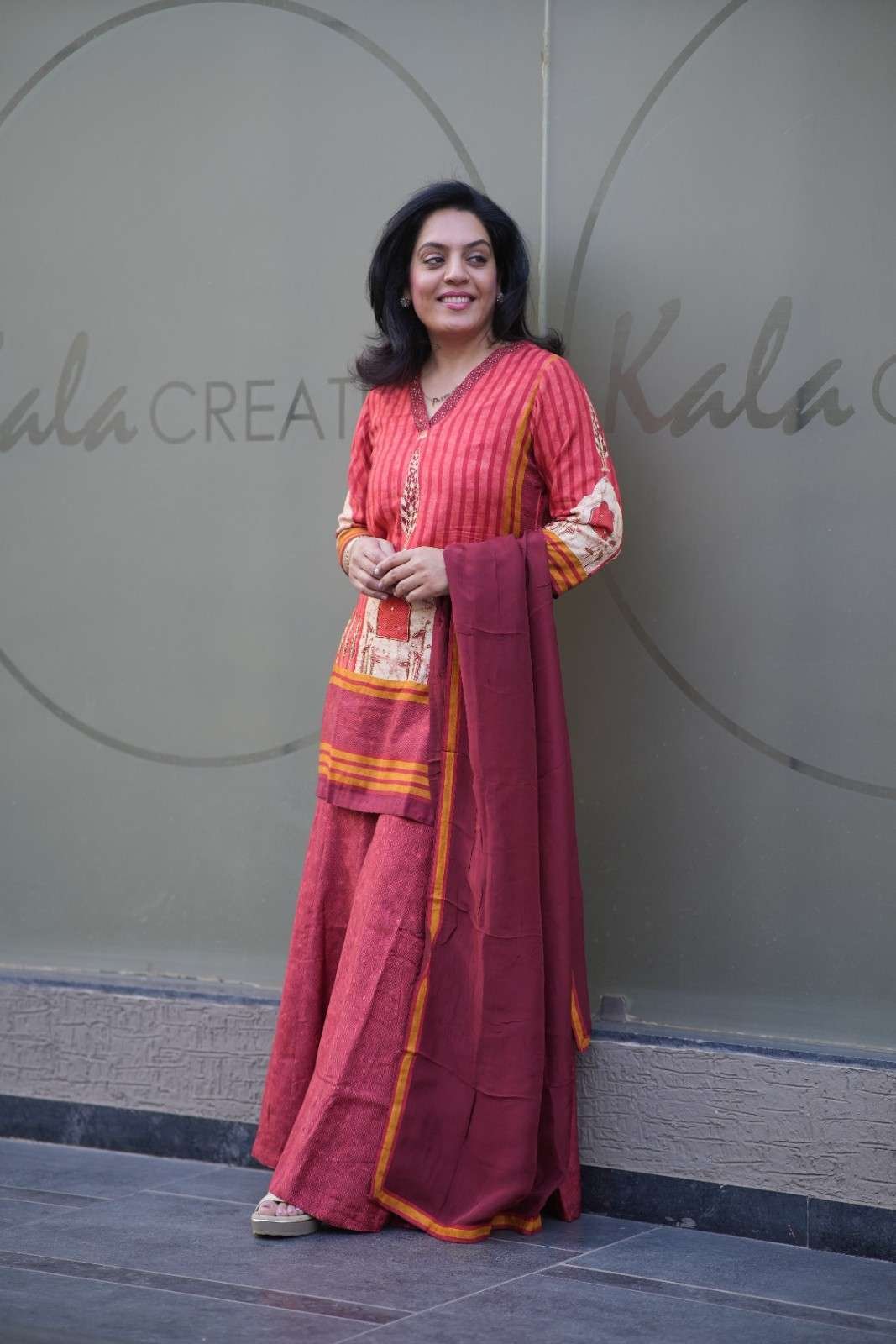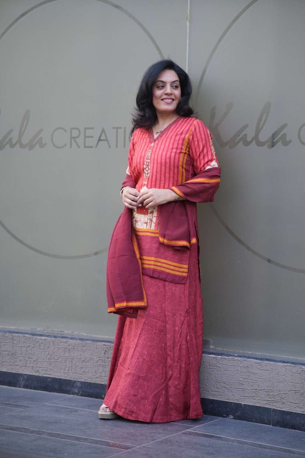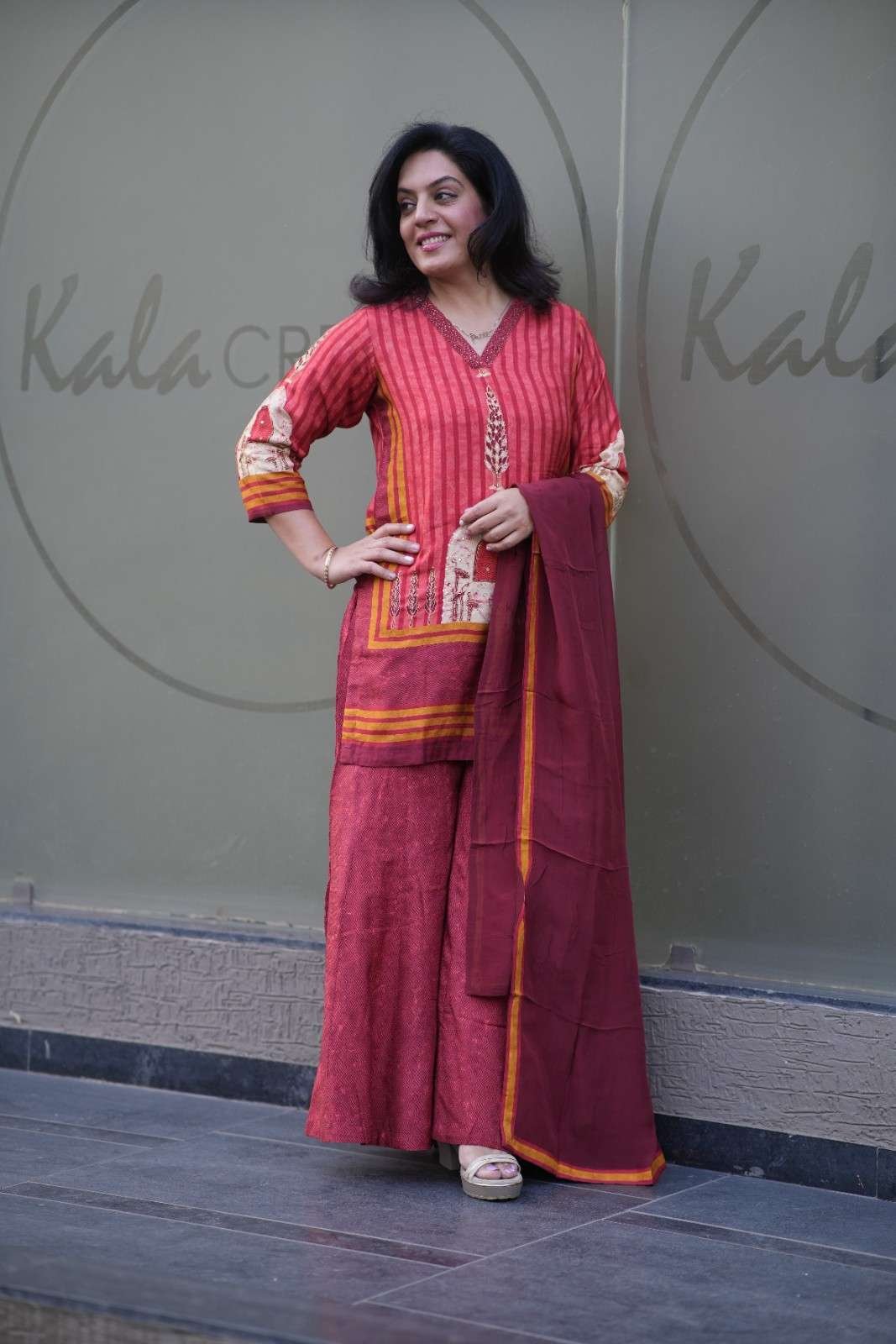 Kala Creation Rust Muslin Straight 3 Piece Suit Set